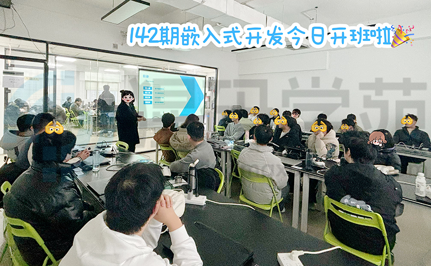 1月16日,猩码学苑第142期嵌入式开发班开班典礼如期举行。梁老师是这期嵌入式班的带班班主任,她先向到场的同学们表达了欢迎,感谢大家选择嵌入式开发这个方向,也感谢大家对猩码学苑的信任与认可。 随后梁老师切入开班核心内容,介绍了机构情况、师资团队配置,还有学员日常管理服务以及全程就业支持等大家关心的重点。 梁老师说道:选择一家机构,最看重的就是能学到东西、能有好出路。这里的讲师团队都是根据不同学习阶段精心匹配的,有擅长夯实基础、能把复杂知识点讲得通俗易懂的入门阶段讲师,有来自大厂、项目经验丰富的进阶阶段讲师,还有深耕行业二十余年、能针对性指导项目和面试的资深讲师。每个阶段都有对应的专业力量保驾护航,不用担心跟不上或学不深。 机构的创始人更是有着华为高层管理经历,深耕教育行业多年,不仅懂技术,更懂职场需求。在学习过程中,他会深入班级和大家交流,甚至在简历准备阶段亲自指导,凭借上千名学员的辅导经验,给出客观又实用的建议。而梁老师自己有着十二年教培行业经验,其中六年深耕IT领域,见过形形色色的学员,不管是学习上的难题,还是生活中的小困扰,都能给出靠谱的解决方案。 学习期间,班级会组建班长、组长团队,大家有问题可以随时反馈,不用怕沟通不畅。每天的课程结束后,会有作业和习题巩固,还需要提交日报进行复盘,养成今日事今日毕的习惯。遇到学习压力大的阶段,机构也会安排团建、球赛、爬山等课余活动,让大家在紧张的学习中能适当放松,调整状态。就业服务更是贯穿整个学习过程。每节课前的分享环节,能慢慢锻炼表达能力,避免面试时因紧张卡壳。就业老师会全程关注大家的情况,从简历优化到面试技巧,再到企业内推,都会提供针对性指导。如果面试多次不顺,还会帮忙复盘问题;入职后遇到适应难题,也能获得专业建议。梁老师还给同学们展示了一些往期学员的就业数据,不同背景、不同起点的学员,最后都找到了合适的岗位。“这些数据是真实的,它告诉你:你走过的路,有人走过,并且走通了。你可以把他当作目标。” 现场的学员们来自不同背景,却有着共同的目标。