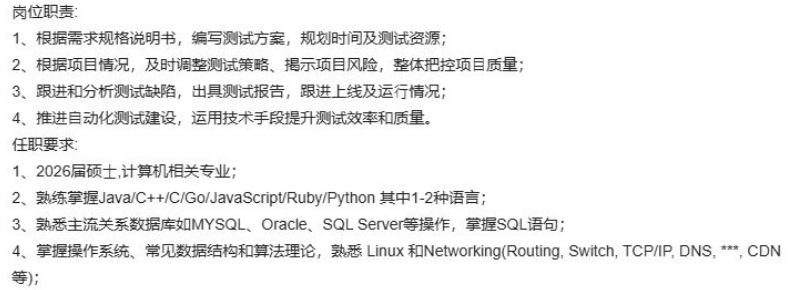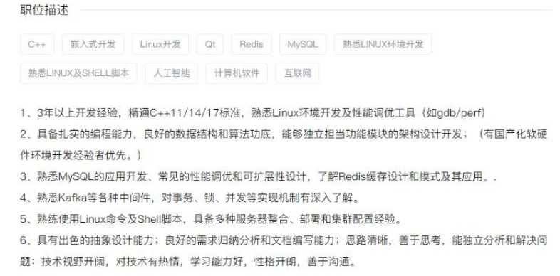 对于计算机专业的学生而言,选择一门既经典又具备持续生命力的编程语言,往往能为职业发展打下坚实基础。C++正是这样一门语言——它性能出色、应用广泛,并且在许多核心领域保持着稳定的需求。如果你对C++感兴趣,不妨从以下几个实际的应用方向入手,这些方向不仅就业市场明确,也具备良好的成长空间。 1.后端/服务器开发工程师 我们每天使用的各类应用,无论是手机APP还是网页,背后都需要服务器支持。C++在后端开发中常用于高性能服务,比如处理大量并发请求、实现低延迟的数据交换。工程师需要搭建和维护服务器系统,管理用户数据,确保业务逻辑稳定运行,例如订单处理、实时通信等。这一领域要求对网络编程、多线程、数据库有扎实理解。 以下是C++后端开发岗位要求可参考: 2.QT开发工程师 如果你对开发带图形界面的软件感兴趣,可以关注QT方向。QT是一套成熟的跨平台开发框架,常用于工业控制软件、车载系统、专业工具软件等。工程师利用QT设计直观易用的操作界面,并确保软件在不同操作系统上稳定工作。这类岗位通常要求熟悉C++基础、QT框架以及界面交互逻辑的实现。 以下是QT开发岗位要求可参考: 3.图形/游戏/VR/AR C++在图形和游戏开发中占据重要地位,无论是电脑游戏、主机游戏,还是VR/AR应用,都依赖它实现高效的图形渲染和实时交互。工作内容可能包括角色与场景建模、特效实现、物理模拟等。此外,影视动画中的三维渲染工具也常使用C++编写。进入这一领域,通常需要掌握图形学基础、相关引擎(如Unity、Unreal)的使用与优化。 以下是游戏开发岗位要求可参考: 4.测试开发工程师 测试开发工程师借助编程能力提升测试效率。例如编写自动化测试脚本、开发压力测试工具,模拟高并发场景以发现系统隐患。这个角色介于开发与测试之间,需要理解业务逻辑,并能用代码将测试过程标准化、自动化,帮助团队更早发现和修复问题。 网络安全方向关注系统与数据的安全防护,例如构建防御机制、分析攻击行为。逆向工程则侧重于分析已有软件或系统的运行机制,常用于安全评估、漏洞挖掘、恶意代码分析等。这两个方向都需要对操作系统、汇编语言、程序结构有较深理解,适合喜欢深入底层、逻辑严谨的学习者。 以下是网络安全岗位要求可参考: 6.物联网/嵌入式开发工程师 从智能家居设备到工业传感器,许多硬件都需要嵌入式程序控制。C++常用于资源受限的嵌入式环境,开发设备驱动、通信协议、实时系统等。工程师需要让设备可靠地执行指令、采集数据并联网交互,因此除了C++,也常接触硬件相关知识和操作系统移植。 以下是嵌入式开发岗位要求可参考: 7.音视频/流媒体/SDK 日常使用的视频播放、直播、视频会议等应用背后,离不开音视频编解码、传输优化等技术支持。C++在这一领域主要用于实现高效的媒体处理算法、实时流传输、以及开发音视频SDK供其他开发者集成。相关工作可能涉及帧处理、码率控制、网络传输优化等内容。 以下是音视频工程师岗位要求可参考: 8.计算机视觉/机器学习 计算机视觉帮助机器“看懂”图像,比如人脸识别、物体检测、自动驾驶中的环境感知。机器学习则通过数据训练模型,实现预测或分类功能。C++因其执行效率高,常被用于模型推理、算法优化和底层框架开发。学习这一方向需要数学基础,并熟悉常用的算法与框架。 以下是计算机视觉岗位要求可参考: 以上这些方向虽然各有侧重,但都建立在扎实的C++语言基础之上。如果你希望系统地提升能力,并在某个领域深入实践,不妨进行更有目标的学习与训练。我们目前提供针对C++的专项课程,注重实际应用与就业衔接,2026年新班正在招生中(开班计划如下图)。如果你对未来的方向仍不确定,或想在C++技能上更进一步,欢迎了解更多内容。 希望每一位认真学习的同学,都能找到属于自己的技术路径。 霸哥在这里,陪你学好C++,走稳每一步。 想学习C++可以扫码咨询客服~ |
