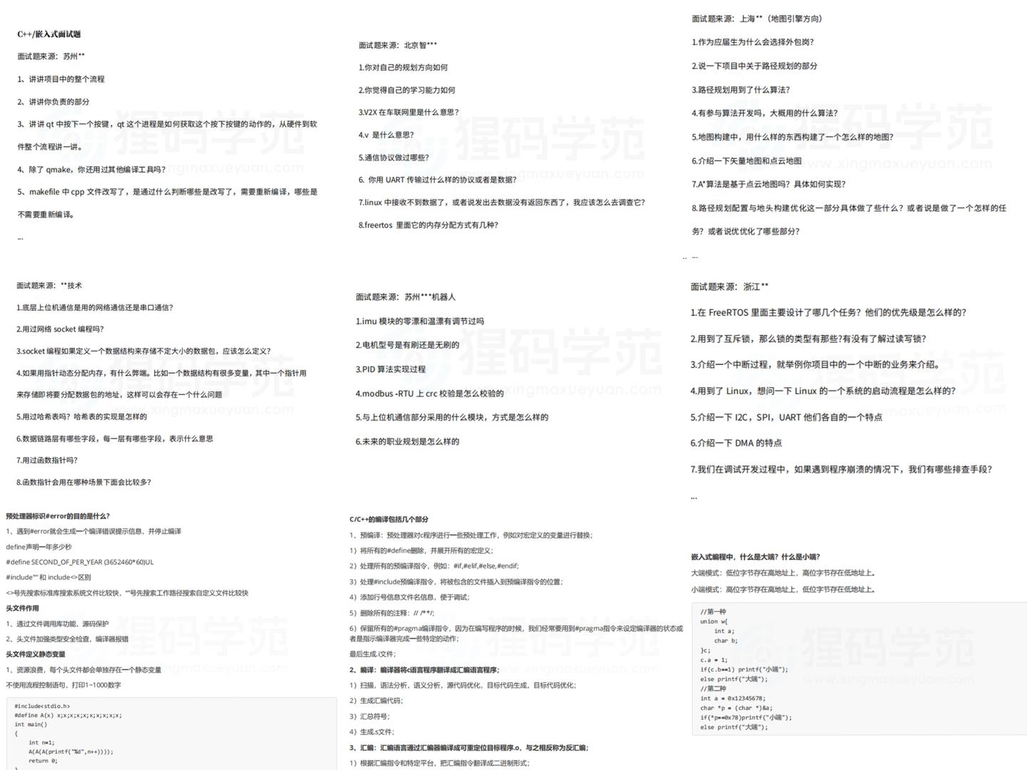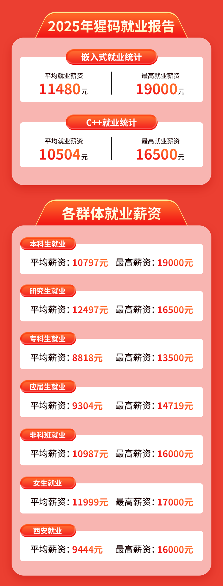 春节刚过,不少程序员已经开始刷招聘网站了。 每年三四月份,互联网行业都会迎来一波招聘高峰。企业年度预算下来了,新项目启动了,老员工跳槽了,空出来的岗位需要在业务全面铺开前补上。对程序员来说,这是一年中机会最多的时候。 但机会多不代表容易进。面试官见的人多了,眼光也刁了。代码写得怎么样,项目经验有没有水分,基础扎不扎实,聊二十分钟就能摸个七七八八。 01为什么金三银四适合跳槽企业在这个时间点放出来的岗位,大部分是真缺人。年前冻结的人员编制陆续开放,新一年的技术规划需要落地执行。面试流程通常会加快,薪资预算也相对宽松。对于求职者来说,可选择的范围更大,议价空间也更高。 不过要注意的是,面试节奏快了,容错率反而低了。面试官没那么多时间跟你绕弯子,问题更直接,考察点更集中。而且这个时间段面试的人多,对比也明显,你稍微准备不足就可能被比下去。 除了常规社招,很多大厂会在这个时间启动春招补录和实习生招聘,对工作年限不长的开发者来说,也是个进大厂的好机会。如果你年前就有跳槽的念头,现在正是出手的时候。 02程序员面试,这三个准备做足这个季节面试机会多,但想拿高薪,光靠刷题不够。我结合最近和一些技术面试官聊的经验,把面试准备分成了三个层次。你要是能把这几块吃透,面试通过率能提一大截。 1.技术准备别只刷题,要深挖一层 很多人面试前拼命刷题,但面试官一问“为什么这样设计”就懵了。技术准备不只是背答案,是要把基础砸实,比如C++不能光知道多线程怎么用,得理解底层原理、内存模型这些。面试官想看的不是你会不会用某个库,而是你遇到问题怎么分析、怎么选型。复习的时候把数据类型、内存管理、设计原则这些过一遍,确保问到底层也能讲明白。还得保持学习状态,最近行业里有什么新技术、新框架多少关注一下,面试时随口聊几句最新的技术趋势,能让面试官觉得你是个有自驱力的人。 2.讲项目经验别记流水账,要讲透你的价值 简历上写“参与了某某系统开发”太单薄了。讲项目得有方法,先说清楚项目背景和目标,再讲你负责哪块、用了什么技术栈,最后一定要落到你的贡献上。最好选一个你最有心得的模块,把业务逻辑、技术难点、你怎么解决的,一步一步讲清楚。比如你说优化了接口性能,别只说“提高了40%”,要讲当时发现慢在哪,是数据库查询慢还是代码逻辑有问题,最后用了缓存还是改了索引,为什么这么选。面试官听的就是你思考的过程。讲完技术可以顺带提一句当时怎么和团队协作的,遇到分歧怎么沟通的,这能让人看到你不只是个技术执行者,而是有判断力、能合作的人。 3.回答问题别急着给答案,先理清思路 面试时最怕的就是问题刚落地你答案就脱口而出,面试官往往会在你说完后追问细节,你要是没想透,三两下就被问住了。不管问题难不难,先花几秒钟理一理,可以重复一遍问题确认理解,然后分步骤讲你的思路。比如让设计一个系统,先分析需求,再拆模块,最后选技术栈,把你思考的过程摆出来,比直接给个“正确答案”更显功底。遇到不会的也别慌,直接说这块不太熟,但根据已知信息可以推理一下,然后讲你的推测思路。面试官看的不是你什么都会,而是面对未知你怎么应对。诚实加逻辑推理,比瞎编硬拗好得多。回答完可以加一句“当时我们还考虑了另一种方案,但因为XX原因没采用”,这能展示你考虑问题的全面性。 03这些坑,千万别踩霸哥见过很多同学,能力不差,却因为踩坑错过了offer,这些细节一定要注意。 应届生拿到offer后,别着急签三方。先对比薪资、福利、五险一金、晋升空间,看清楚违约条款,想清楚再签,避免后续麻烦。 金三银四笔面试很容易撞档,遇到撞档的情况,提前和企业沟通,看能不能调整时间,优先去意向度高的企业。 技术真实性是底线,简历和面试里别夸大自己的能力。企业后续会有技术实操,试用期也会考核,能力不匹配,最后还是会影响录用。 还有补录别放弃,4月中下旬到6月,很多企业会有补录,这时候竞争相对小,主批没上岸的同学,重点盯补录通道,有捡漏机会。 霸哥整理了一批C++/嵌入式企业真实面试题目,涵盖技术面、项目面的高频题,希望能帮到正在求职的大家。 想要获取更多完整面试题,可私信联系老师,同时还能免费预约一对一职业规划咨询。 如果你的C++/嵌入式技术基础比较薄弱,缺乏项目实战经验,或是想转行进入这个领域却不知从何学起,不妨了解下猩码的培训课程。 猩码C++/嵌入式软件开发培训课程,采用四个半月的系统化教学,紧密贴合企业实际招聘需求,从基础到实战循序渐进,帮大家搭建完整的技术体系。 课程内容覆盖C++核心基础、嵌入式底层开发、Linux系统开发,还有企业级实战项目,全程有专业老师指导,及时解决学习过程中的各类技术问题。 实力好不好,真实数据最有说服力。2025年学员的就业数据,就是猩码教学实力的最好证明。 从2025年学员就业情况来看,猩码嵌入式方向学员平均就业薪资11480元,最高就业薪资19000元;C++方向学员的平均就业薪资10504元,最高就业薪资16500元。 所有薪资均源自学员真实offer,数据真实可查,欢迎大家到校实地考察了解。 无论你是计算机、电子、自动化相关专业的应届生,还是想要转行的职场人,只要想从事C++/嵌入式开发,猩码都能助你快速对接企业招聘